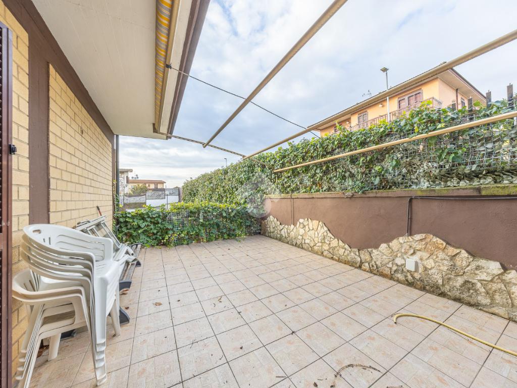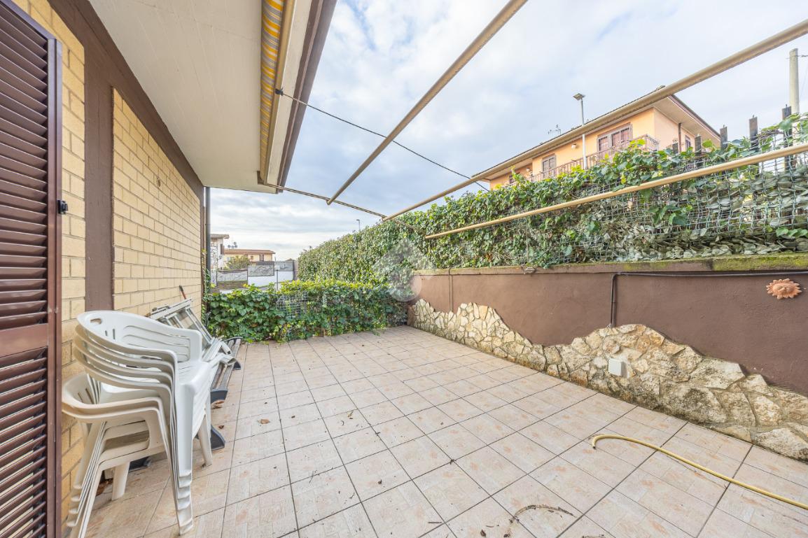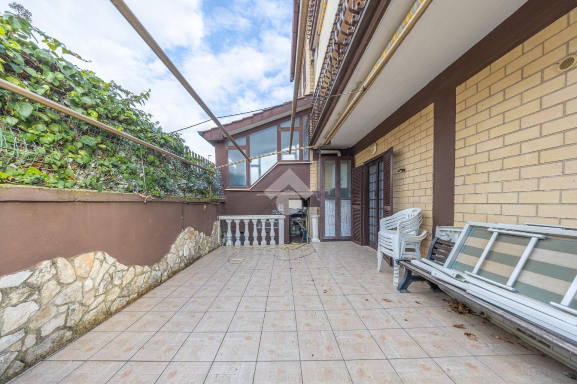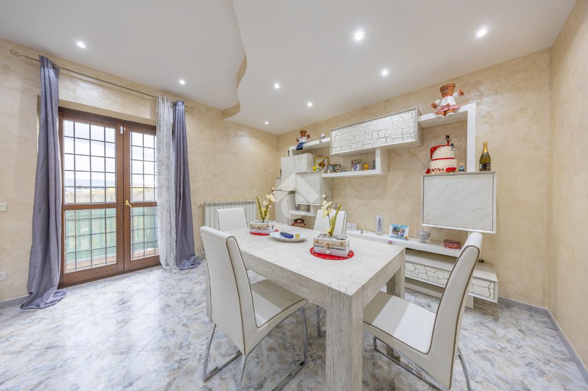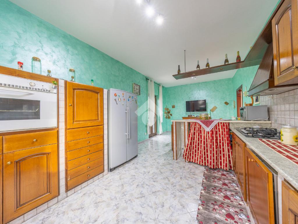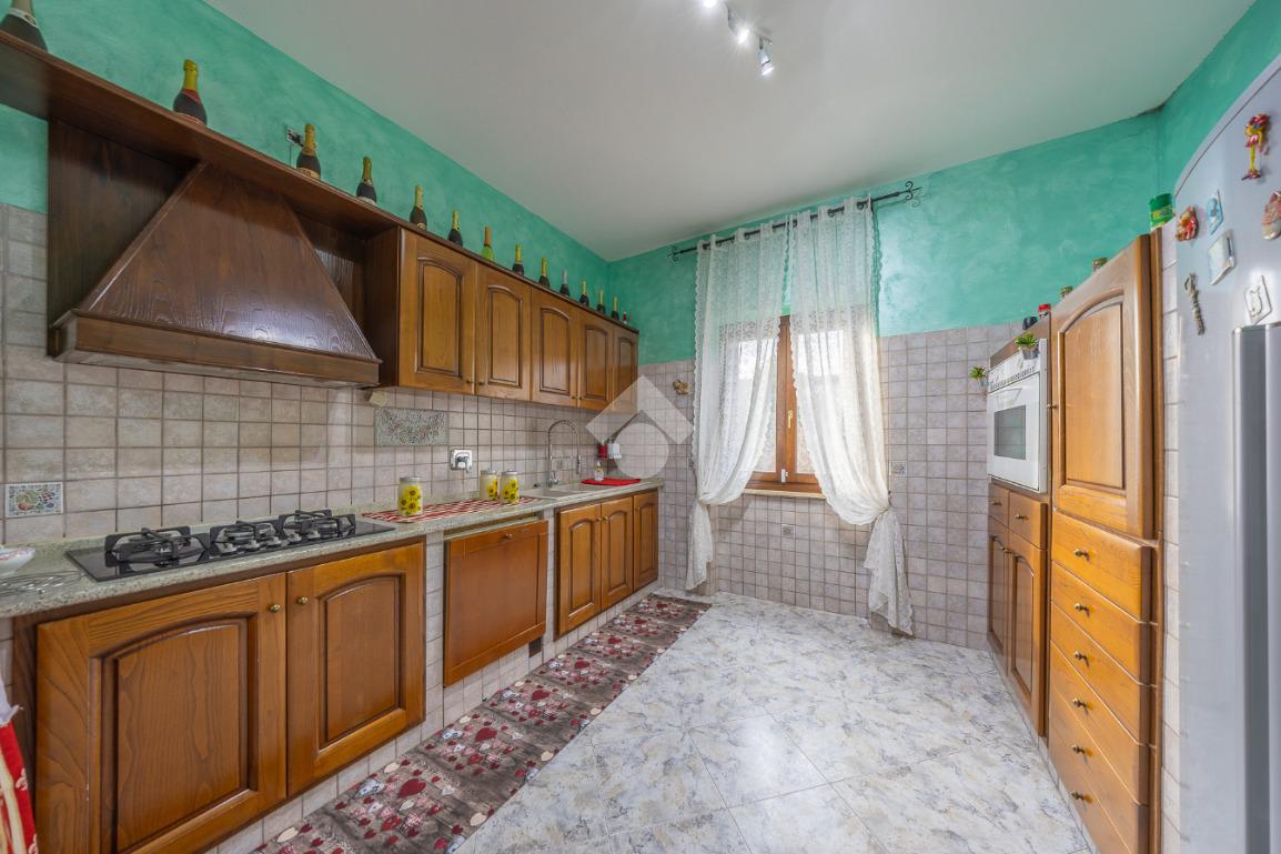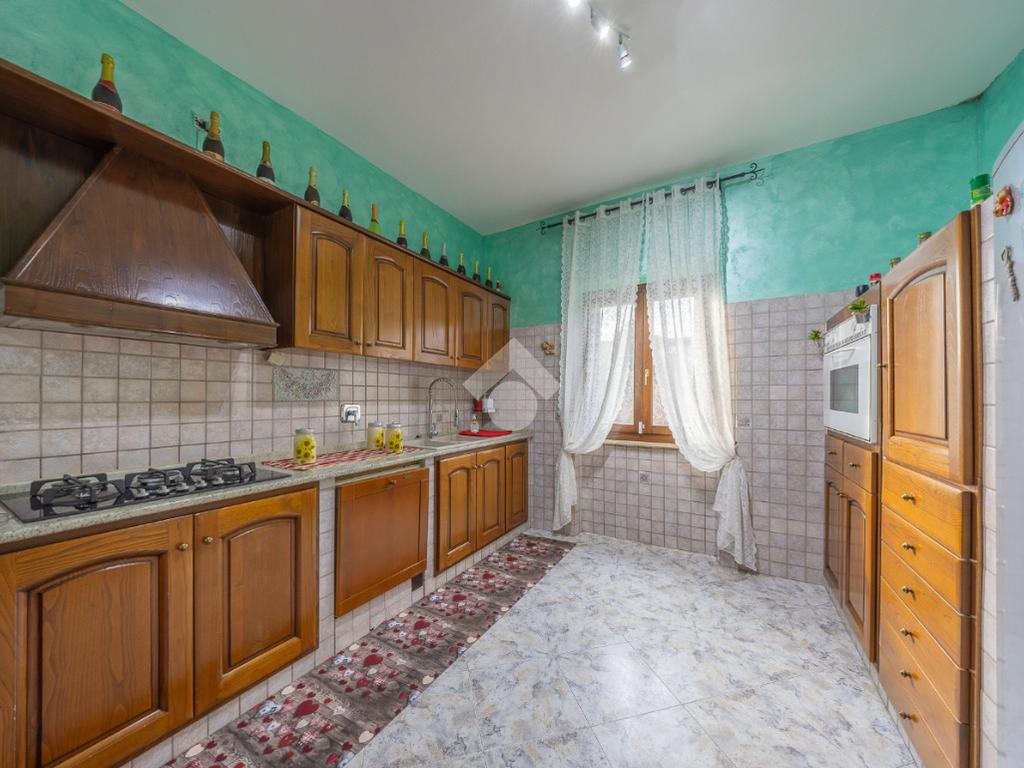 L'ampia cucina abitabile, con tinello, è anch'essa servita da una porta finestra che permette di godersi un comodo sfogo esterno mattonato.