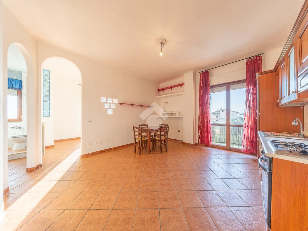 L'abitazione si presenta molto luminosa ed è composta da un comodo soggiorno con angolo cottura, ripostiglio e un acceso diretto al primo balcone.