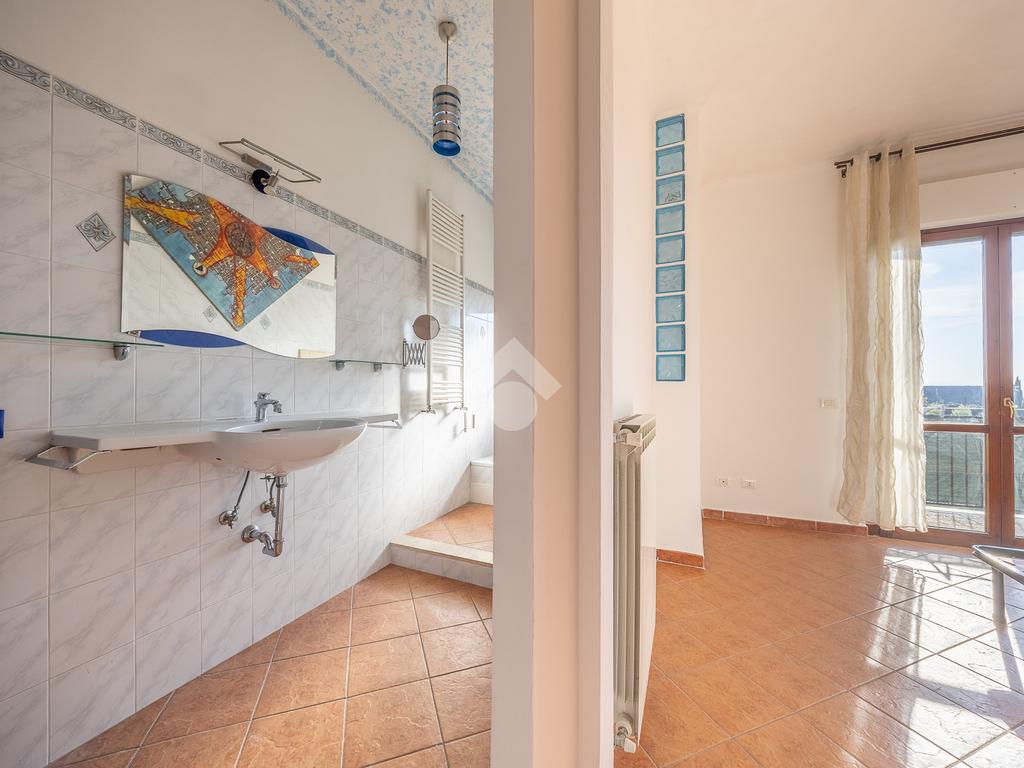 Dopodiché troviamo un bagno finestrato dotato di vasca ed un’ampia camera da letto servita da una porta/finestra con acceso diretto sul secondo balcone, da cui si può ammirare una bellissima vista panoramica.